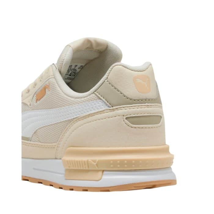 Puma Graviton sneakers til dame i beige. Moderne sneakers med stilfulde detaljer, der giver et trendy udtryk. Det perfekte valg for dig, der ønsker både komfort og et moderigtigt look. Snørebåndene foran gør det nemt at justere pasformen, mens den bløde og udtagelige Puma Soft indersål sikrer optimal komfort. Den chunky ydersål tilføjer et moderne touch og giver samtidig ekstra støtte og skridsikkerhed med sit mønstrede design.